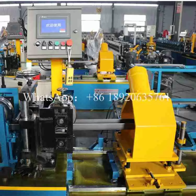 Once the metal has been formed into the correct shape, the next stage is hydraulic shearing. The machine cuts the formed beams to the required length, ensuring that each piece is uniform and meets the required specifications. The hydraulic cutting system provides high cutting power, enabling the machine to handle various material thicknesses and strengths with ease.