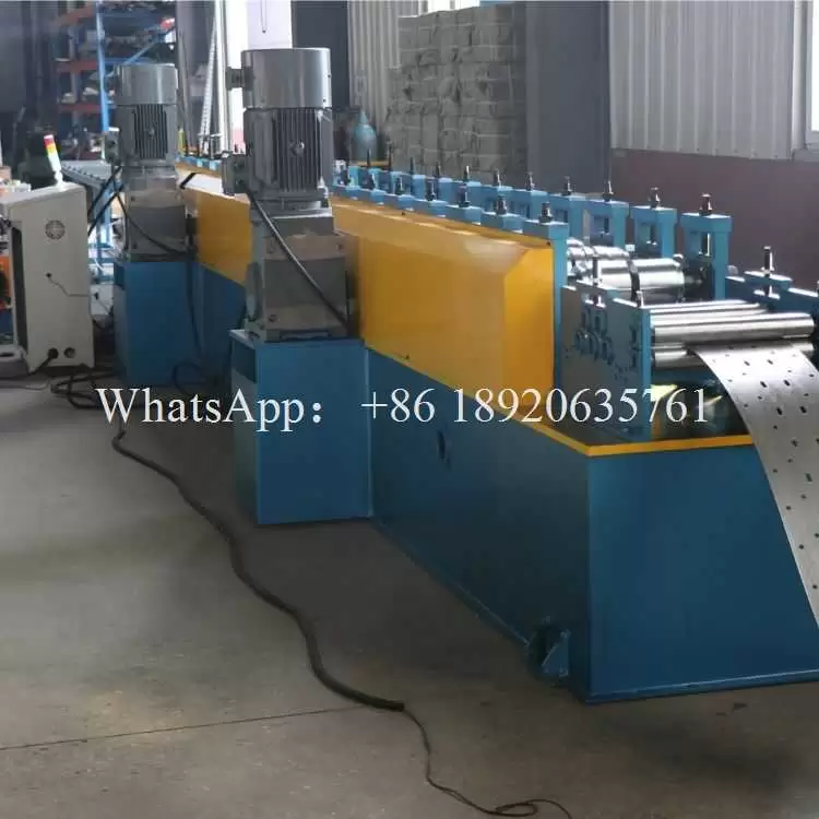The next stage is the punching process. The Shelf Upright Rack Roll Forming Machine Production Line is equipped with a precision punching station that creates holes in the material based on the required specifications. These holes are crucial for the assembly of the shelf uprights and are customized according to size and position to meet the specific needs of the end product.