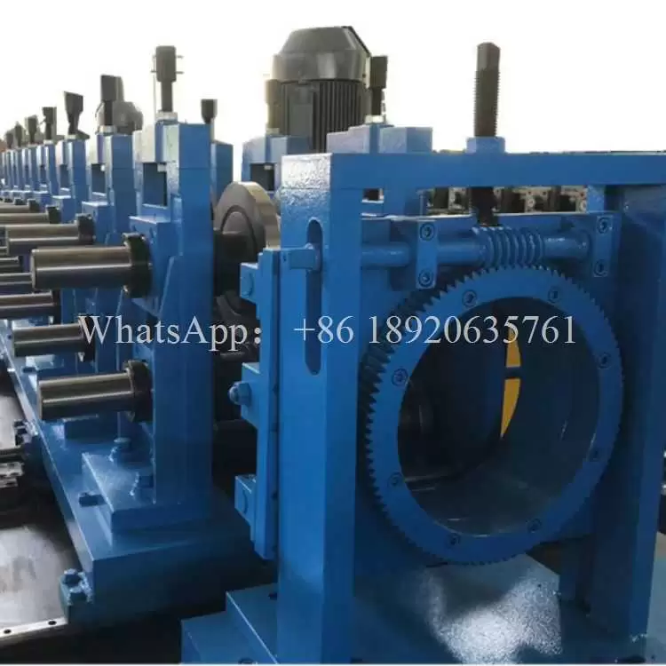 The two C-shaped semi-finished products produced by the roll-forming machine are connected to a tube by a bite machine to become the final product